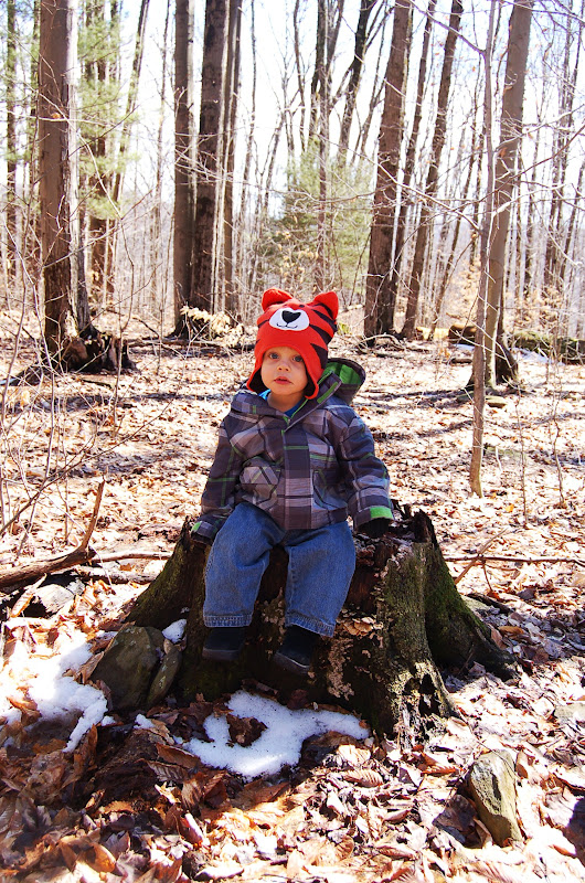 Once we reached a flat spot we let Buddy Bee out of the stroller so he could explore the woods himself.