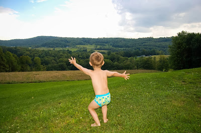 After the farmer was finished for the day our little family headed down the hill so Buddy Bee could get a closer look at the big, red tractor!