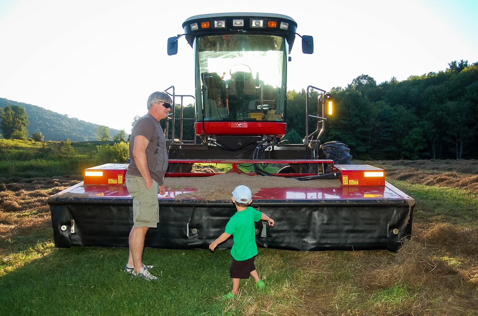 One of the most exciting times on the hill is when the tractors arrive to cut our hay fields.